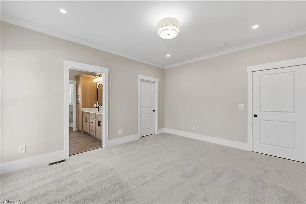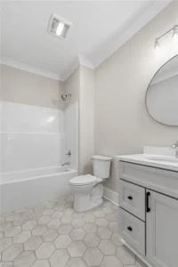 The primary bathroom is truly a standout feature of this home—designed to feel more like a spa than a standard bath. With an abundance of custom cabinetry, there’s no shortage of storage, keeping everything organized while maintaining a clean, elevated look. A beautiful soaking tub creates the perfect place to unwind, while the large walk-in shower—finished with designer tile—adds both function and luxury. Dual vanities provide plenty of space for daily routines, making this bathroom as practical as it is stunning.